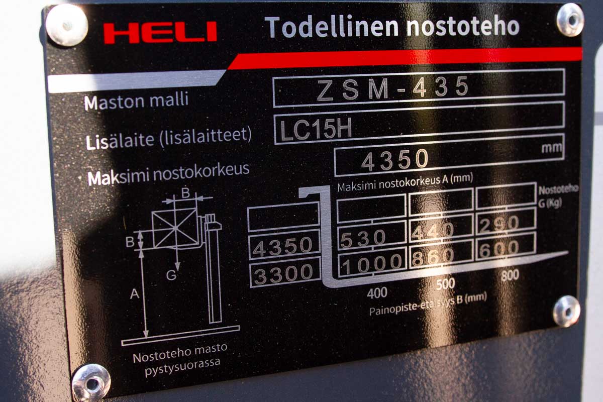 Kapasiteetti: 1200 kg:n EUR-lava poikittain tai 900 kg:n EUR-lava pitkittäin