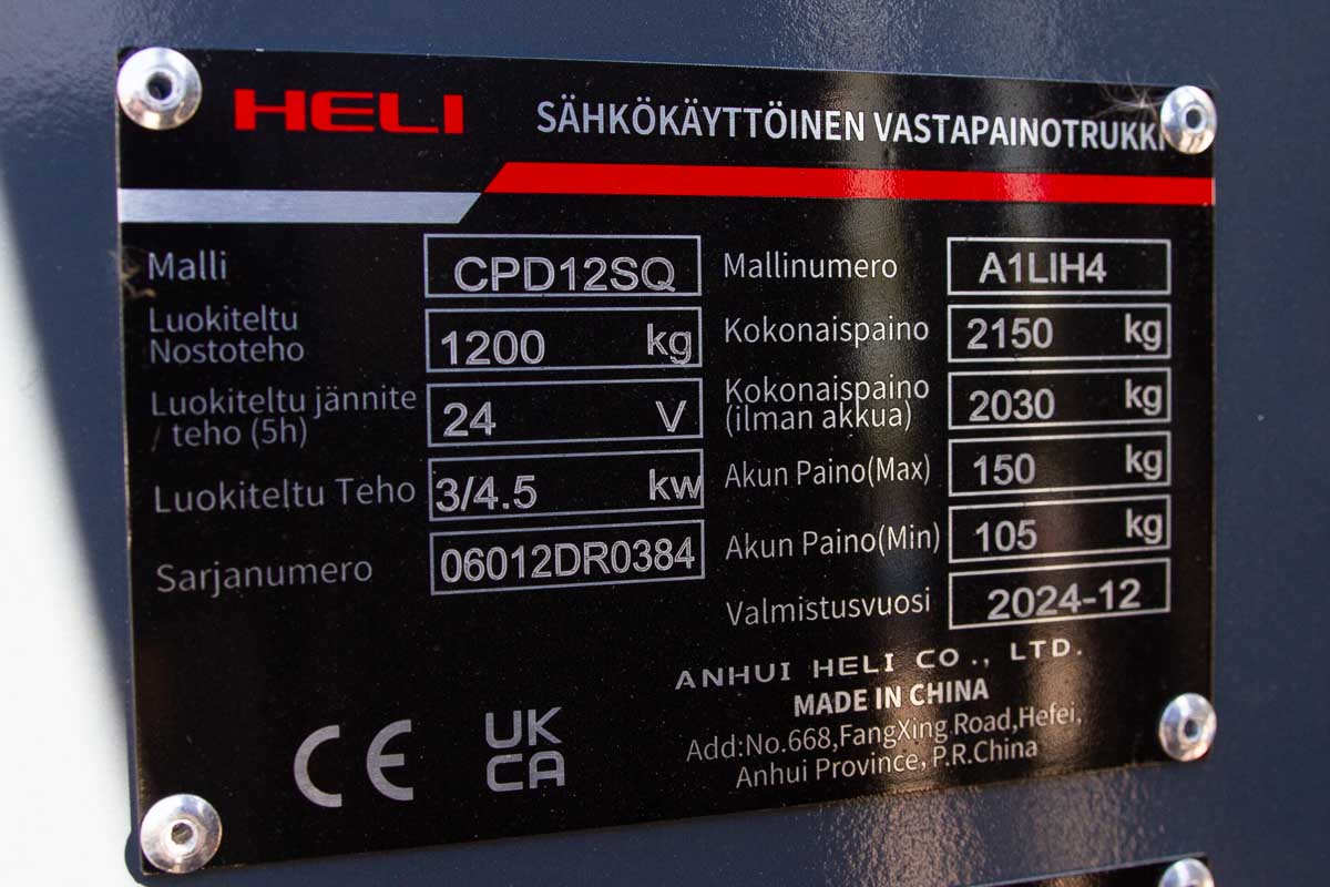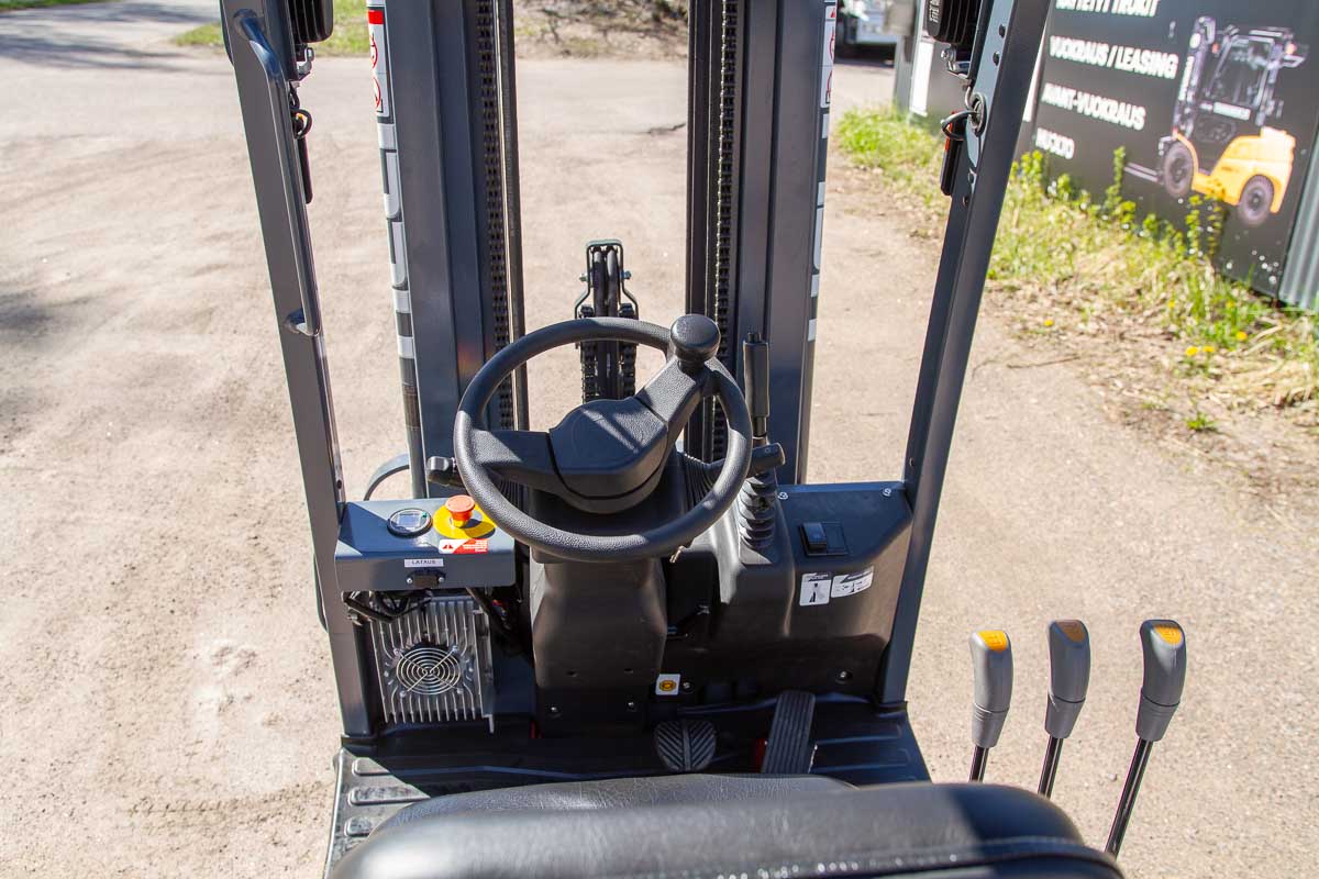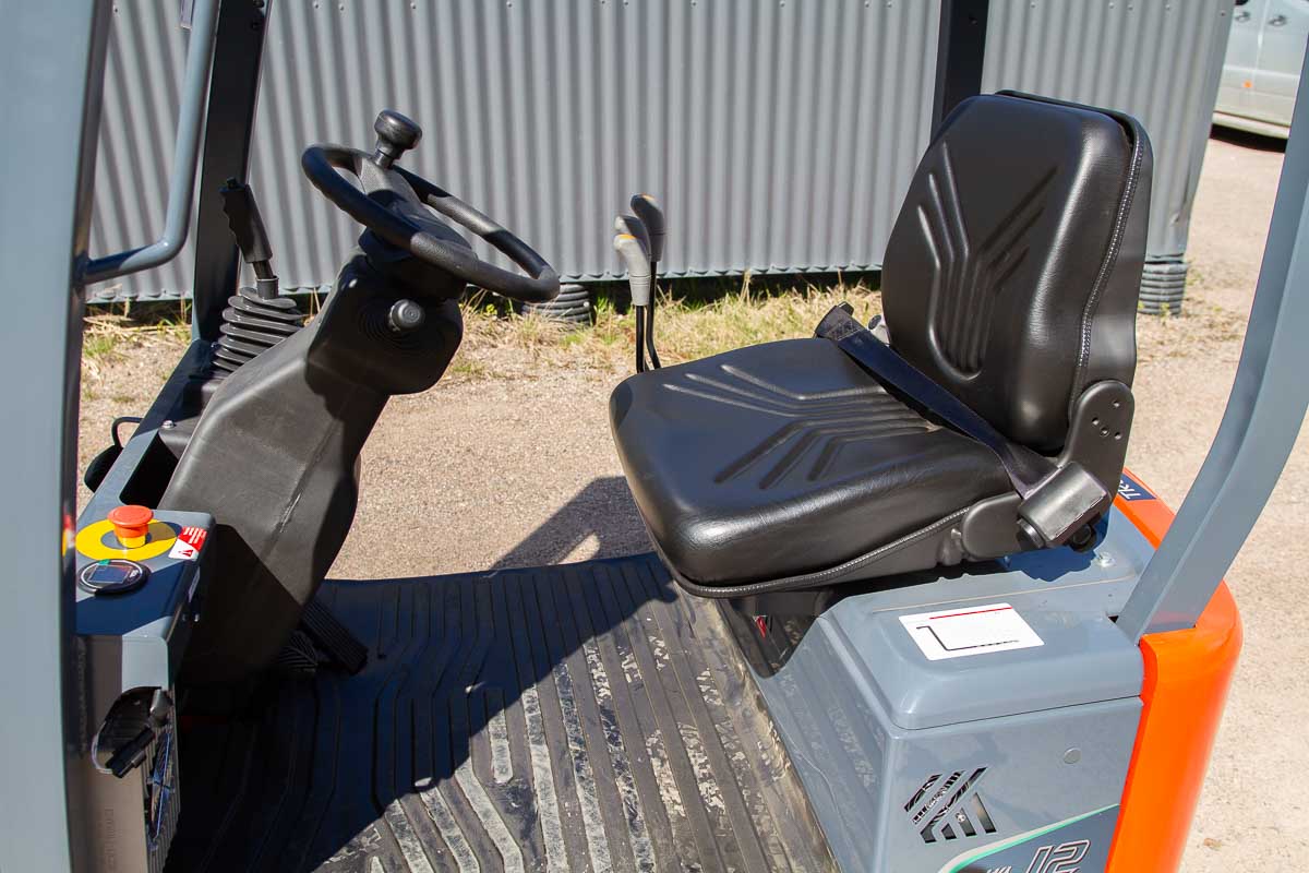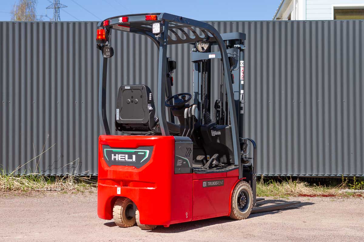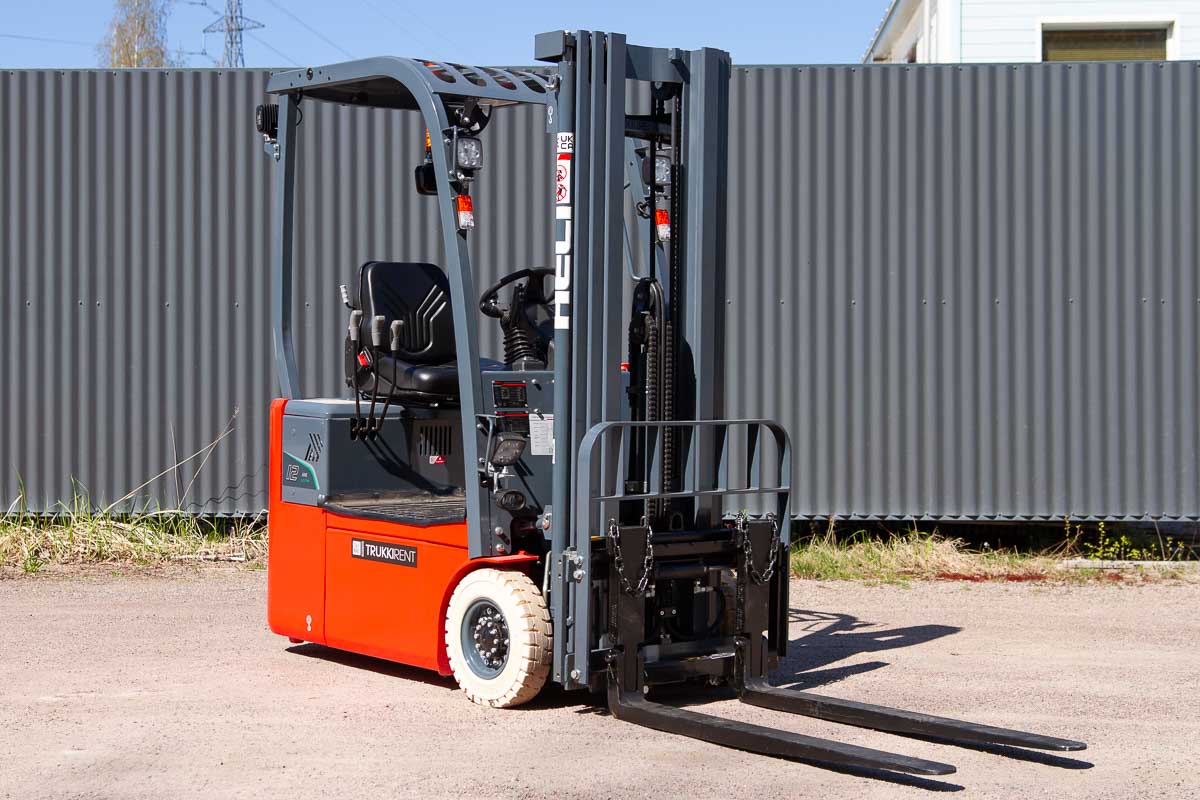 Erittäin näppärän kokoinen sähkövastapainotrukki nykyaikaisella litiumakulla. Nostokyky 1200 kg, nostokorkeus 4350 mm. Pystyyn nostettavien haarukoiden ansiosta koneen voi ajaa tarvittaessa pieneen tilaan, esimerkiksi tavarahissiin.