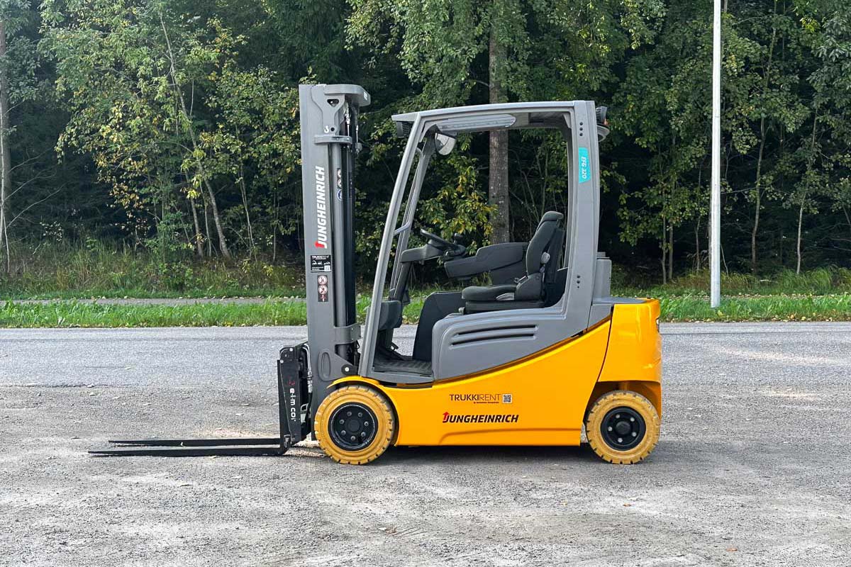 Nelipyöräinen sähkötrukki 2000 kg:n nostokyvyllä. Kolmijatkeinen masto, nostokorkeus 4800 mm. Haarukoiden sivusiirto- ja levityslaite. Akku 48 V / 750 Ah.