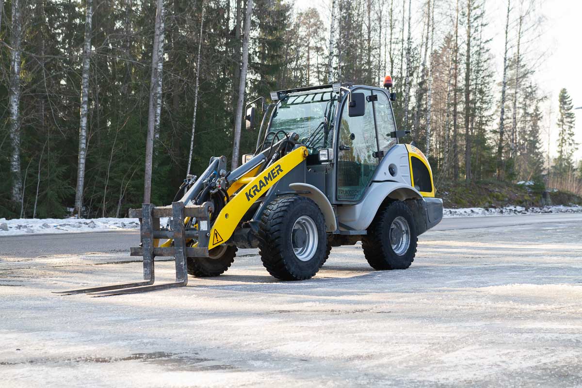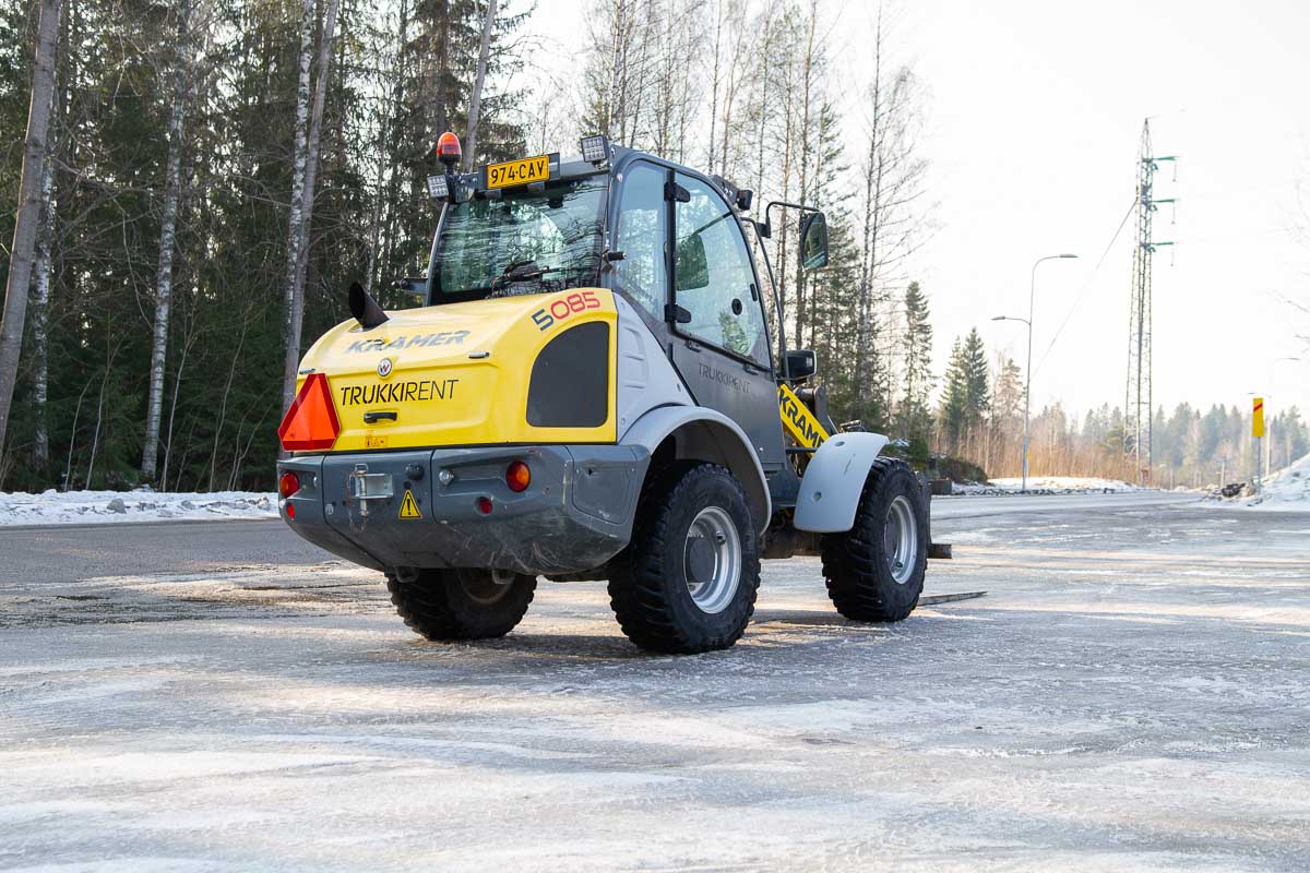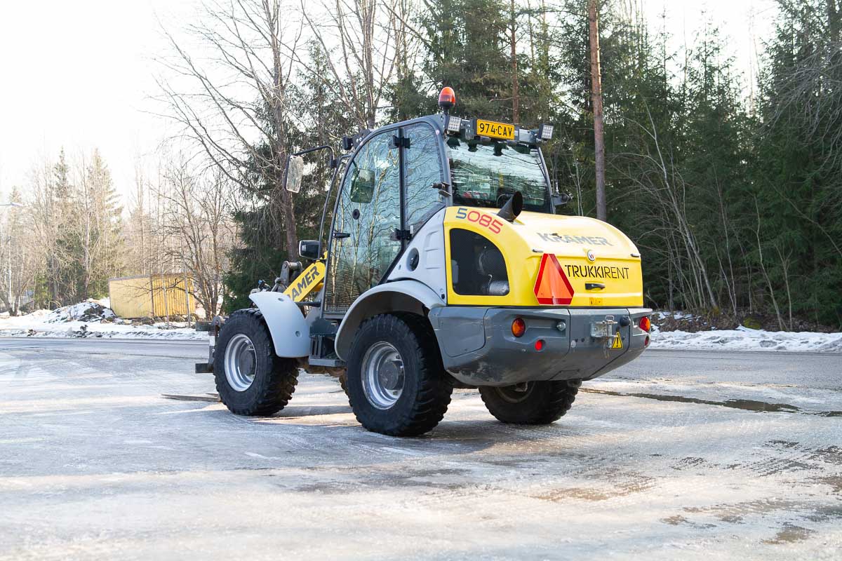 Ketterä ja nelipyöräohjauksella varustettu pyöräkuormaaja. Perustoimitus sisältää kauhan ja trukkihaarukat, kysy vuokralle myös muita lisävarusteita töitä helpottamaan.