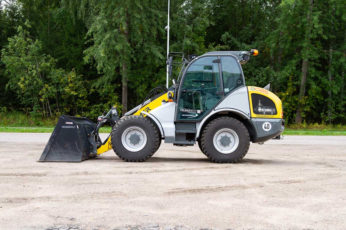 Tehokas ja suorituskykyinen pyöräkuormaaja. Nelipyöräohjaus helpottaa käsittelyä ja neljä eri ajotilaa mahdollistavat optimaalisen ajettavuuden työstä riippuen. Toimitetaan peruskauhan ja trukkipiikkien kanssa, muitakin lisävarusteita saatavilla tarvittaessa.