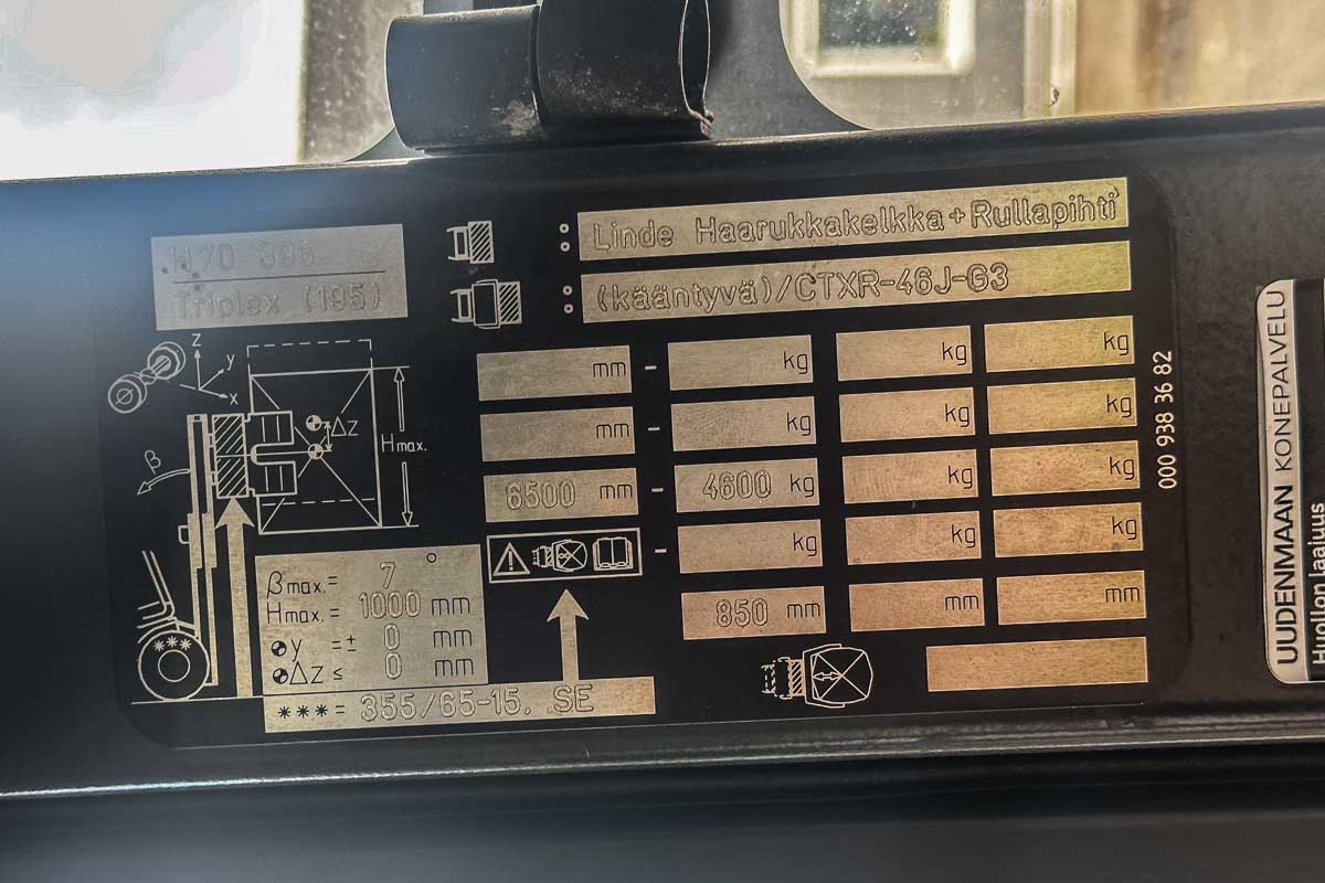 Siistikuntoinen dieseltrukki reilulla (7000 kg) nostokyvyllä. Kolmijatkeinen masto, suurin nostokorkeus 5150 mm. Haarukoiden asetinlaite ja pitkät (2400 mm) haarukat.