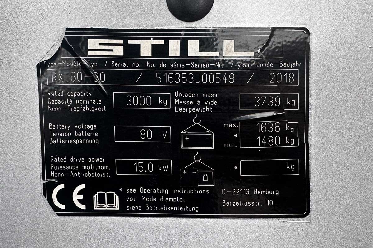 Todella siisti ja nostokykyynsä nähden kompakti sähkövastapainotrukki. Nostokyky 3000 kg, suurin nostokorkeus 5190 mm. Haarukoiden sivusiirto ja levitys.