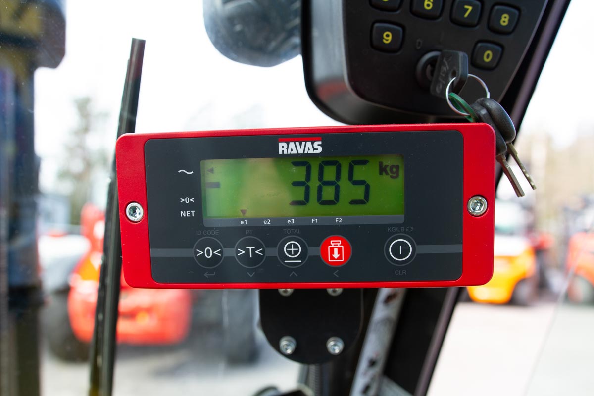 Erittäin siisti sähkövastapainotrukki. Kolmijatkeinen vapaanostomasto, haarukoiden sivusiirto- ja levityslaite. Nostokyky 3500 kg, nostokorkeus 4615 mm.